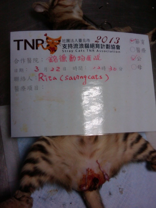 這隻貓咪是在輔大發現而設法補捉的,是隻年輕的貓咪.