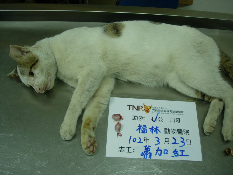 花色: 白底虎斑 誘捕地點: 中和興南路