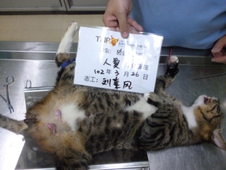 這是在愛河天公廟捕獲的虎斑大公貓,已送至醫院結紮. 感謝大家的捐款這些貓咪才能順利結紮. 0326-3