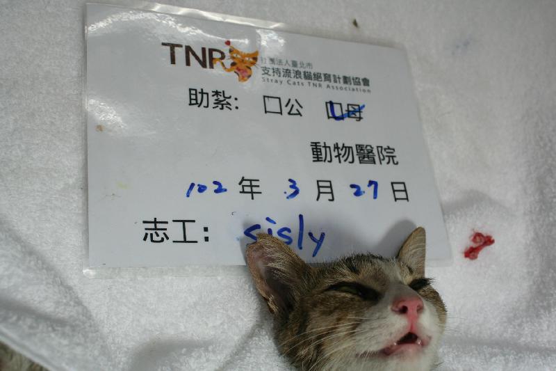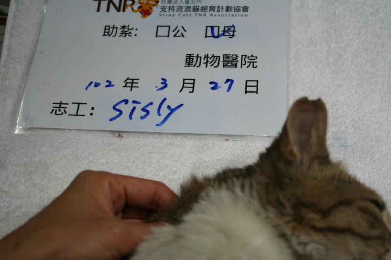 這是在餵狗狗附近注意到的母貓, 觀察了一段時間確定沒有在哺乳, 趕緊誘捕結紮.