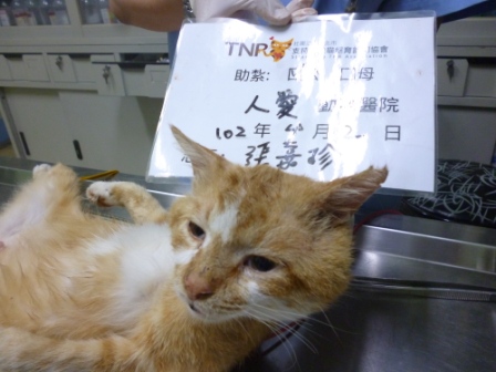 花色: 橘貓 誘捕地點: 建軍里一帶