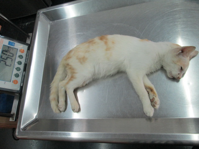 花色: 白底橘斑 誘捕地點: 屏東市青島街