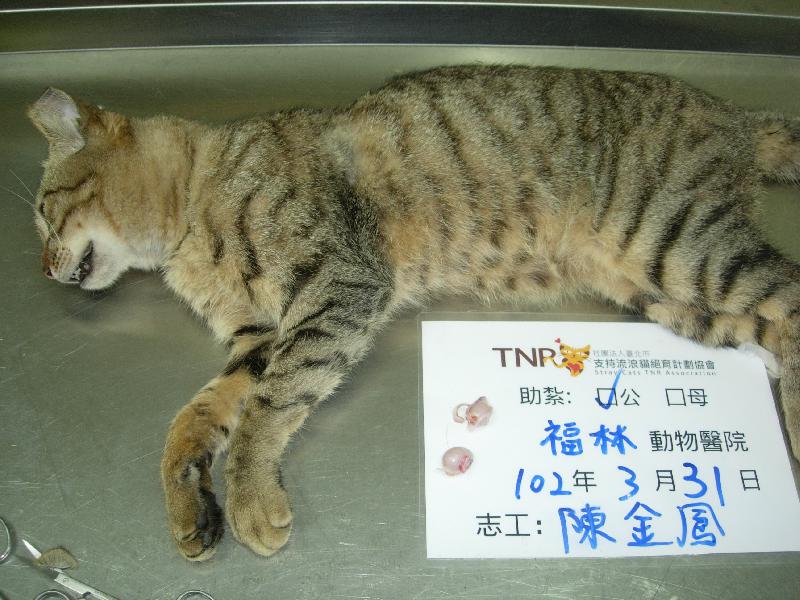 這隻貓是我家老愛媽餵養的浪貓群中的一隻,因餵養的貓越來越多,但卻沒有做結育,和她分享TNR的好處,加上已有鄰居因貓咪的聲音而抗議,請動物收容所來抓貓,所以積極著手幫這些浪貓一一結紮。讓浪貓們有個安身之所,媽咪也可以繼續餵養牠們!