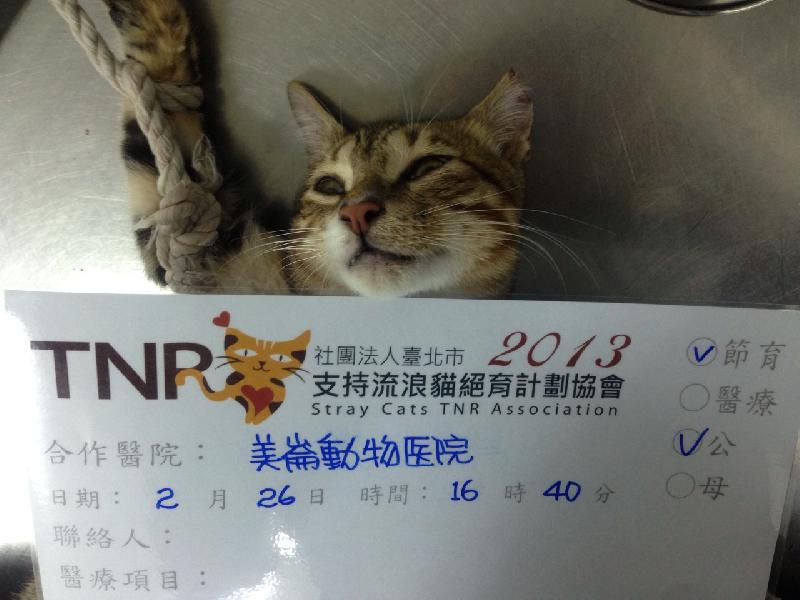 由於照片漏掉了,所以現在補申請,這是隻從花蓮收容所接出來的貓咪,這一批接出來有7隻,部份結紮費用由志工分擔,貓咪都蠻親人的,應該是有飼養過被飼主遺忘的貓咪,會送養讓大貓也有一個家,目前由志工林慧玲照顧,也謝謝TNR協會的幫助,也請大家贊助結紮費用,謝謝!