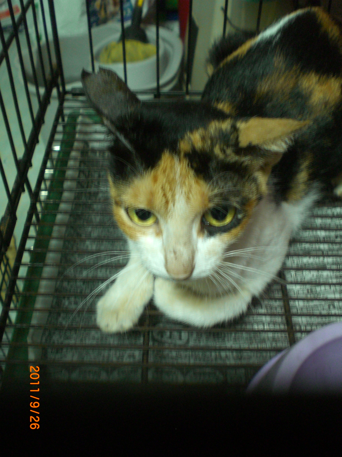 一直抓不到的三花媽媽,不小心又讓她在生了一次,上禮拜發現貓媽媽帶著四隻小孩出現,請住在樓上的葉小姐幫忙9/23誘捕成功,四小貓近期會誘捕結紮後放回