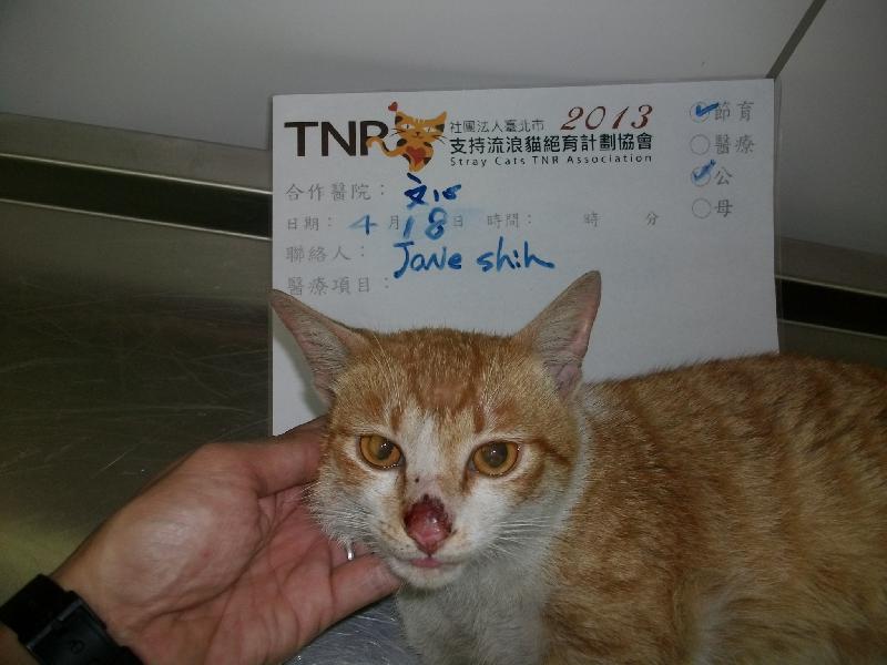 花色: 橘白貓 誘捕地點: 林口長庚附近的文興公園