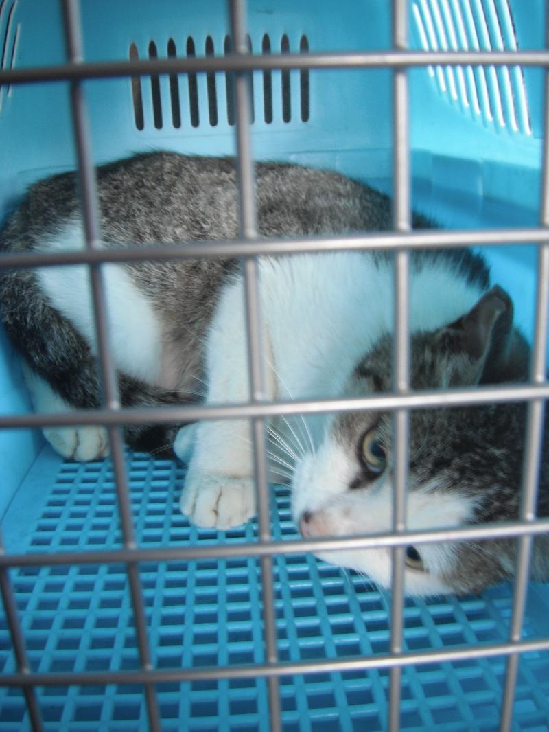 於校內新村教職員宿舍區捕抓,平常由愛心教職員餵食,白底虎斑妹妹非常親人,如果開罐頭的話就會爬到你大腿上磨蹭,希望絕育後可以平平安安生活。