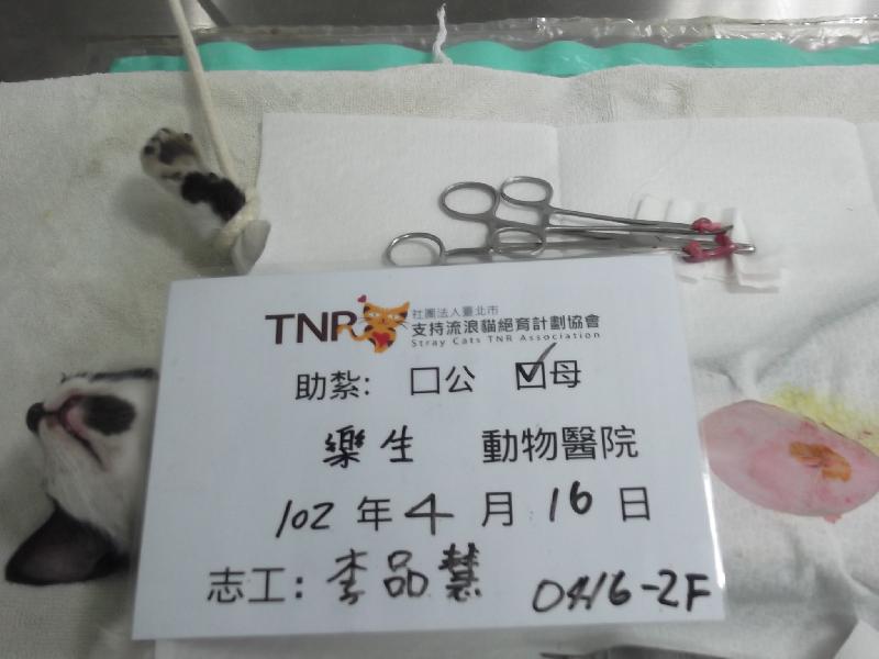 結紮醫院: 樂生動物醫院 結紮費用: 1200