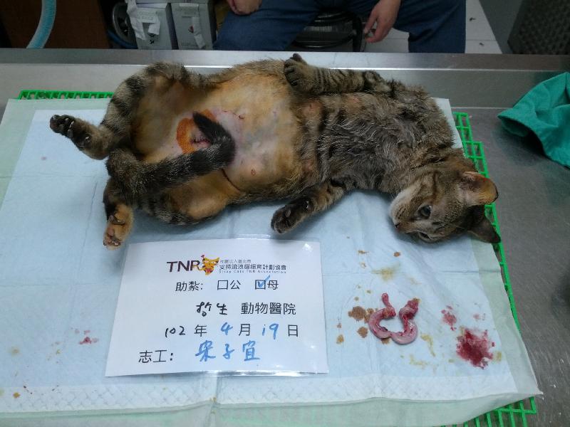 流浪母貓於102年4月19日送哲生動物醫院,4月23日去醫院取回照片檔隨身碟,醫師說4月27日他會來電確認貓咪傷口是否已痊癒,能否取回原地放養.