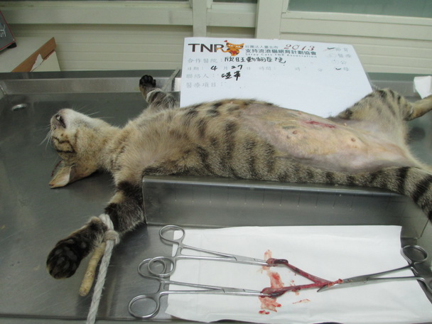 誘捕者暱稱: 楊溫蒂 性別: 母 花色: 虎班 誘捕地點: 九份 結紮醫院: 欣旺動物醫院 結紮費用: 1500 助紮者: 已付款:周彩霞x1, Itchy Annie Chenx2, 小凱x1, Irene Hsux1 額外醫療費用申請: 特別說明與誘捕心情: 周彩霞小姐20120328向協會求援助紮案件.到[九份觀光老街]因為從台北開車一趟路途遙遠.山區的天候也不穩定時而飄雨.天雨路滑難增加困難度.