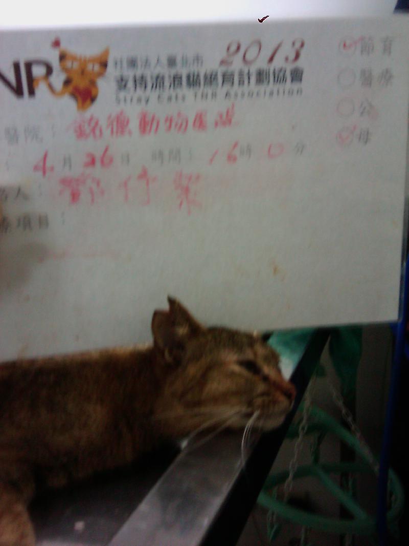 花色: 虎斑 誘捕地點: 泰山區明志國小