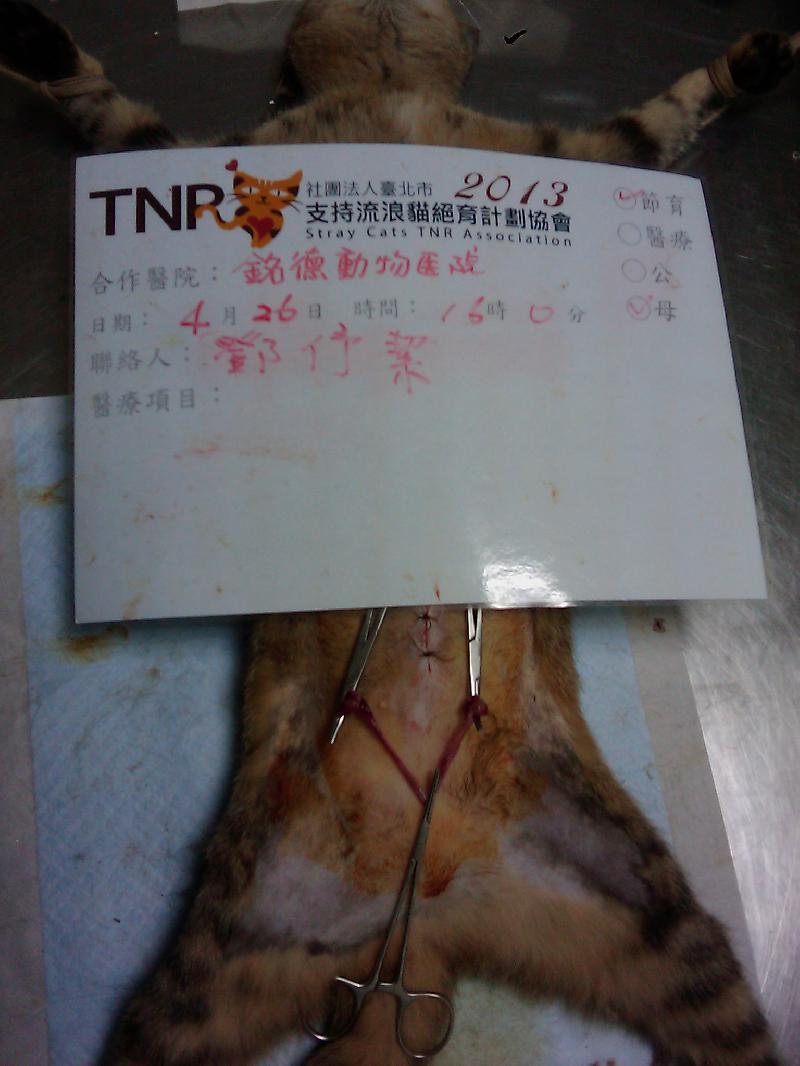 結紮醫院: 銘德動物醫院 結紮費用: 1500